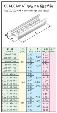 產品名稱: XQJ-LQJ-01AT 型鋁合金梯級橋架
