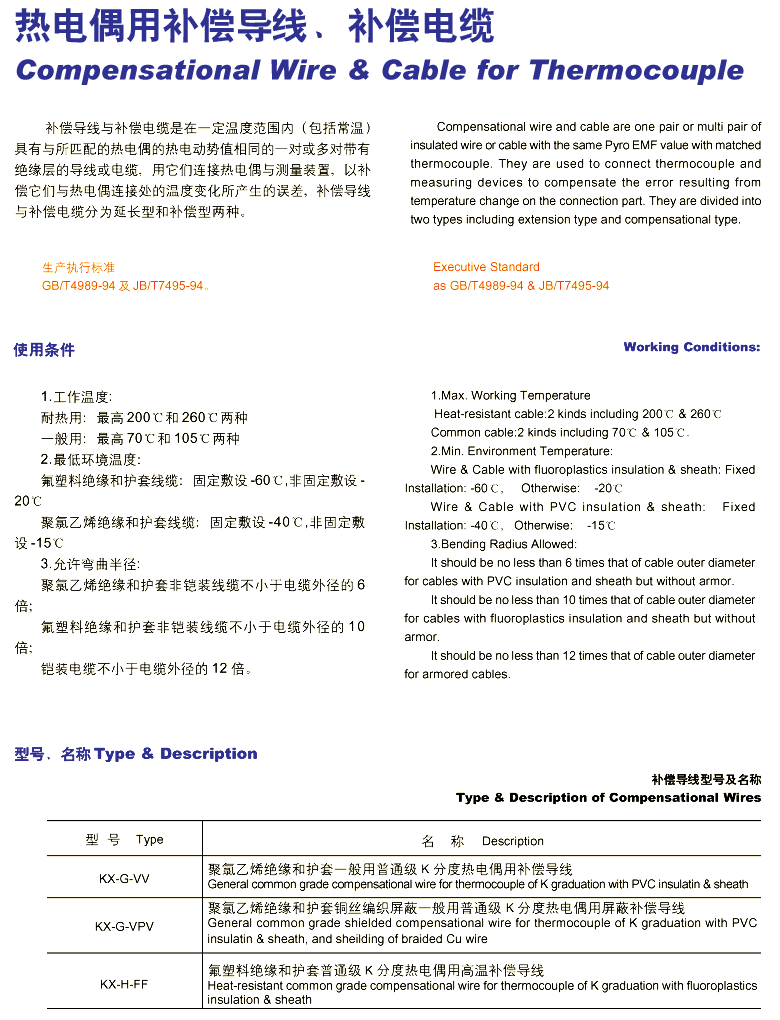 • 商品名稱:熱電偶用補償導線及補償電纜